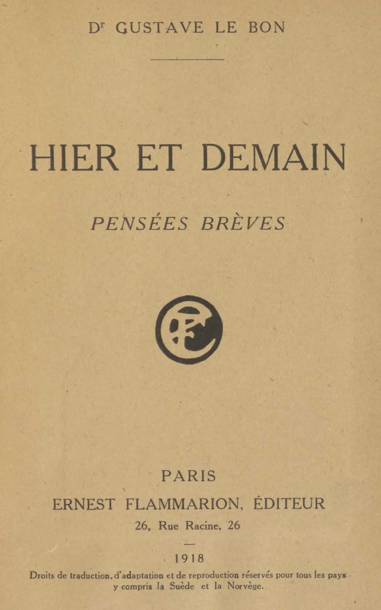 La pensée brève semble une forme littéraire bien adaptée aux besoins de l’âge actuel. Le champ de la connaissance est devenu si vaste et la spécialisation si étroite qu’il faut bien se résigner à n’aborder que les idées générales servant de soutien aux diverses branches du savoir. Elles constituent l’armature philosophique des choses, l’âme des phénomènes.