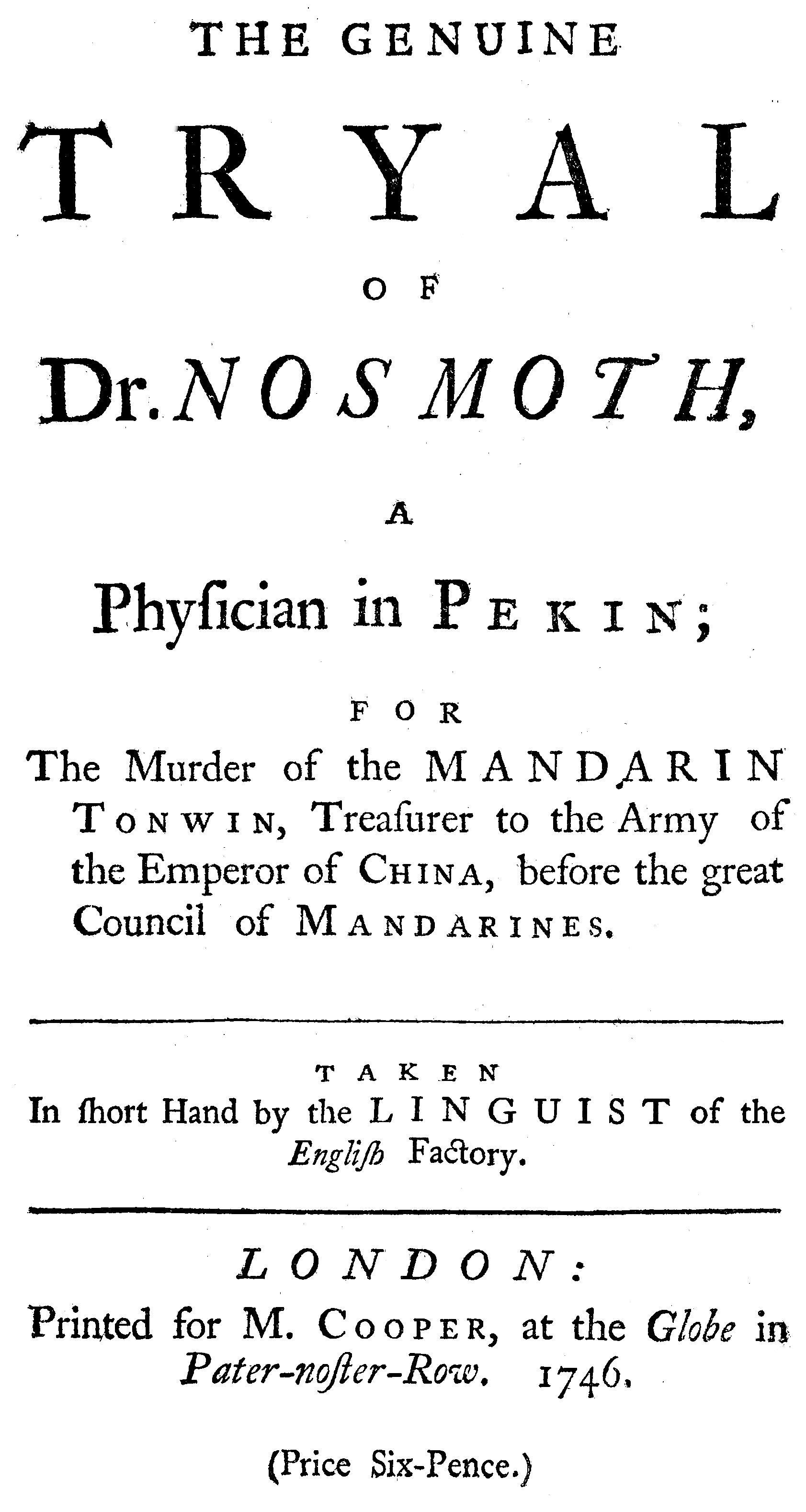 Title: The genuine tryal of Dr. Nosmoth, a physician in Pekin