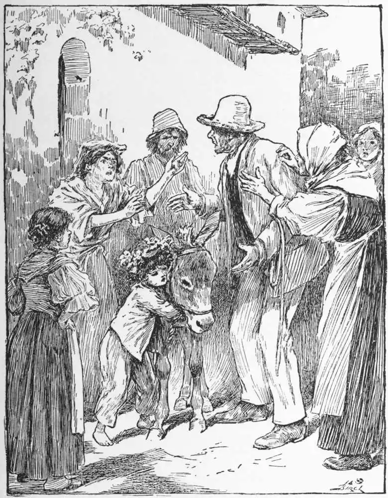 For an hour or so they all wept and lamented while their mother alternately wept and raved. She abused her husband and the old man who had bought the donkey, by turns. Stray neighbors dropped in and helped her. They all agreed that old Beppo was a usurer and a thief, who had somehow got the better of Annibale, who was also a drunken, shameless brute. Old Beppo was so overwhelmed by the storm of hard words and bad names raging about him that he actually was stunned into allowing that the donkey should remain where she was for two days, that she might finish some work her mistress had promised to do with her aid. And he went away grumbling, with his piece of rope over his arm.
