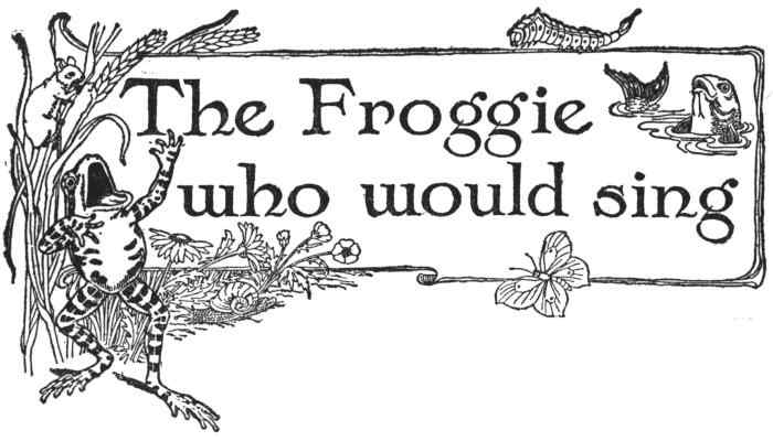 Froggie was very proud of his voice, and as he knew the fishes were proud of it too, he thought he would be sure to charm the world with his singing. So he set off across the fields and sang to the little field-mouse and the mole.