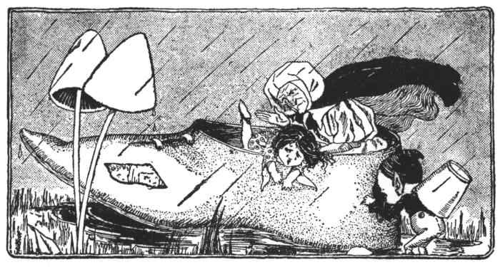And so the pair of them, (Chubby-face perching herself on the roof of the toad-stool,) kept guard till Blue-eyes awoke with a smile.