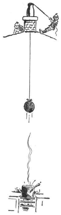 The little goblin woman was very poor, but the way she managed was something wonderful! She and her little family lived in a hollow tree, with a little garden round it. There were three floors inside and a little string ladder connected the rooms. The first floor was a kitchen. It was ever so clean and cosy, and it was here that the family had meals, and sat in the cold winter evenings round the little twig fire, listening to the wind and rain outside.