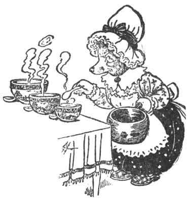 Now between conversation and butterflies the three Bears had let the time pass, till suddenly Mrs. Bear saw by the shadows of the trees on the grass that the porridge must be cool.