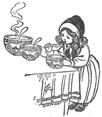 “My dears,” she said, “you’re going to have bread in your broth every night. And I’ve got a new soup recipe in my pocket. What’s more, we’ve all been asked out to tea to-morrow, so I’m going to put your hair in curl-papers.”