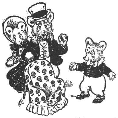 No time was to be lost in such sad straits, and Mr. Bear had his foot on the stairs before Mrs. Bear had so much as decided how the little chair could be mended. She felt sorely puzzled, but, picking up her gown in front, she followed Mr. Bear up the stairs, while little Master Bear clambered, heavy-hearted, up behind her, holding on very tight to the back breadth of her skirt, for who could tell what would happen next!
