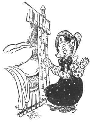 Poor Mrs. Bear! she turned round to look at her own white bed, with its pretty dimity curtains, and she called out in her middling-sized way, “Oh, deary, deary, deary me, someone has been sleeping on my bed!” Her feelings and the counterpane were sadly ruffled.
