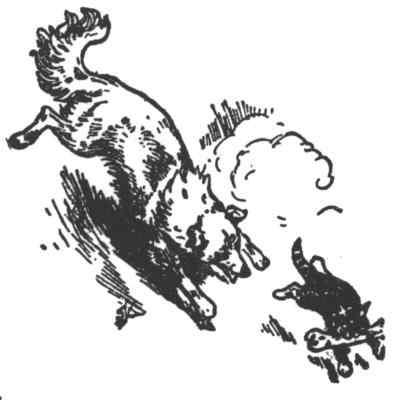 “Bow-wow-wow-wow!” Off flew Puss and her kits, and scrambled up a tree. The next moment Bruno came bounding up, and oh, wasn’t Maggie glad to give Pip, Pop, and Pepper back into their mother’s charge!