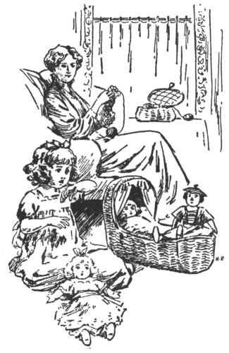 Doris thought a moment and then picked up Arabella. There was another cry, and a scratch on her wrist. “Oh, mother,” sobbed Doris, “they have hurt me all over. Now I won’t put any more pins in, I won’t really! I’ll start now and learn to sew, mother.”