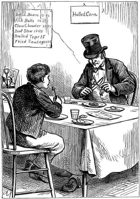 Mr. Maynard conducted him to Delmonico’s, where he ordered the best that could be had even at that famous place, and three times as much as the famished boy could eat. The wealthy jeweller watched him with genuine interest, as he consumed his beefsteak and potatoes and omelet; and Wade came to himself before he had half finished the meal.
