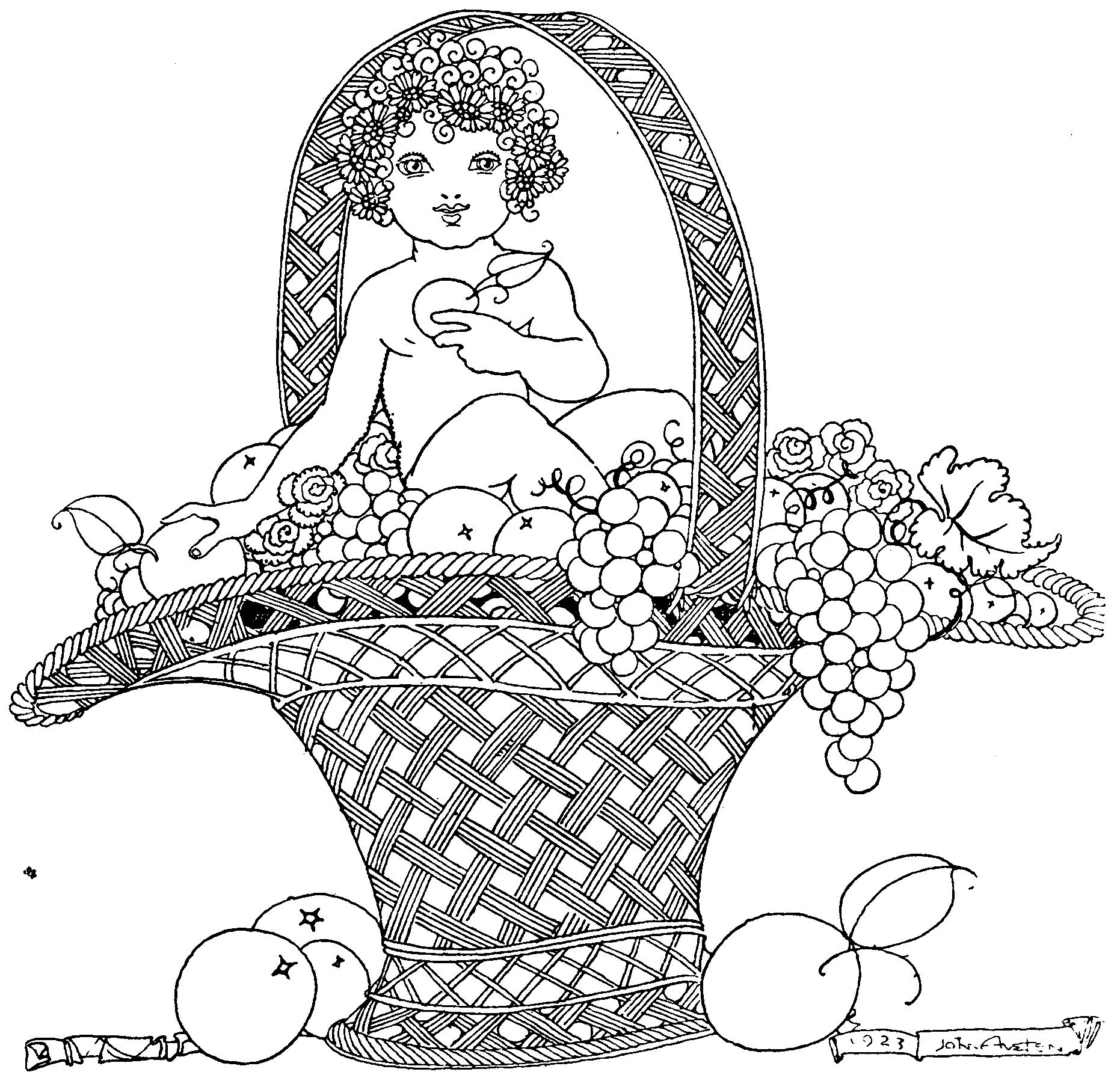 “When he is old enough,” she said, “I shall make him a suit of all the colours of the fruit in the shop. For if it had not been for the fruit there would have been no Harlequin.”