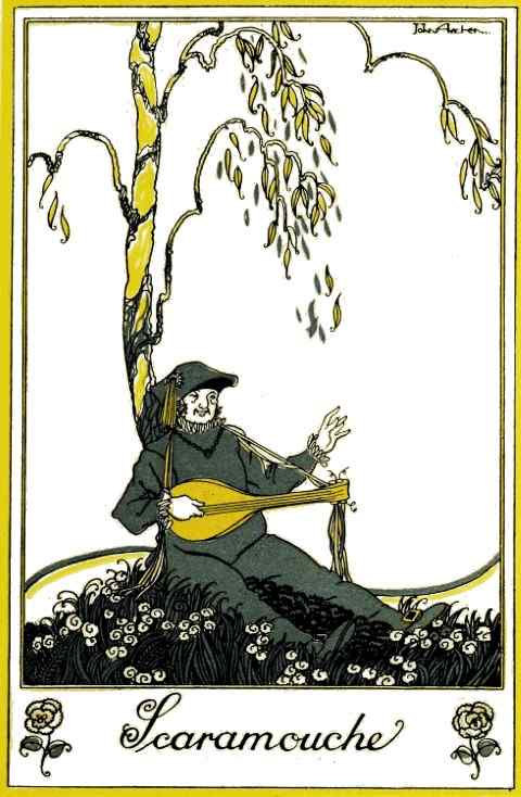 In a minute he was back again, and with him was Scaramouche, plump and merry as of old. Columbine welcomed the musician warmly, and asked him eagerly for news of Venice.