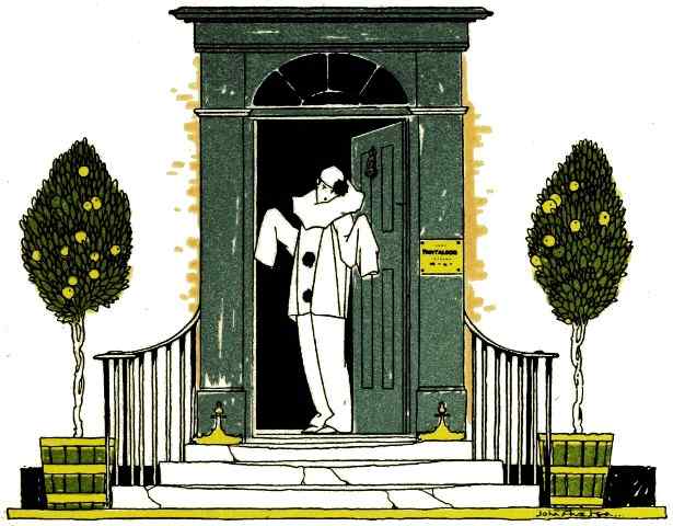 “No,” said his mother. “Of course he was very angry about that, but I think he was really glad to be rid of so disgraceful a son”—and she smiled at Harlequin as though she did not consider him in the least disgraceful. “It was this way,” she continued. “Having become such an important person in Bergamo, he had to go to a great many banquets. As you will remember, Harlequin, he was always a very full-blooded man; and in the end an apoplexy carried him off.”