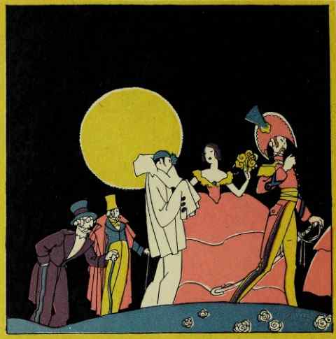 The very first thing that Harlequin did when he and Columbine were fairly out of Venice was to strip off Lelio’s grand clothes and throw them into a ditch. Seeing him once more in the well-known suit of many colours Columbine laughed for joy.