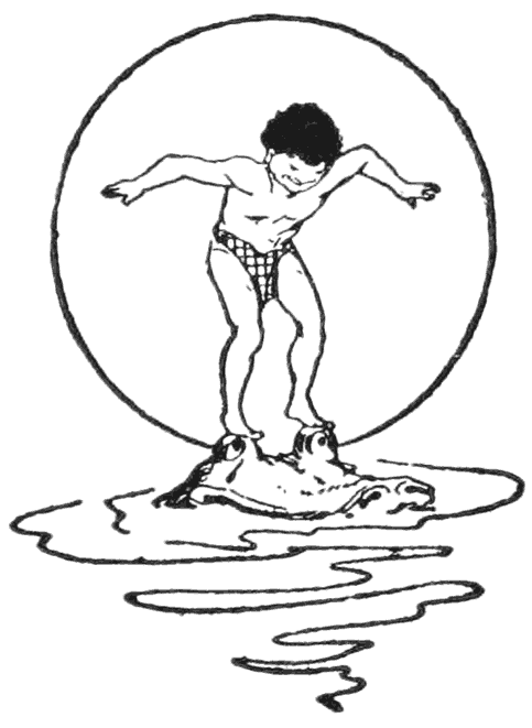 It was not a pleasant river at all, for it was brown in color, and flowed through a dark and gloomy forest of great trees and closely woven vines. There were crocodiles, [14]too, in the ugly black river, and Parle was afraid to bathe in it.
