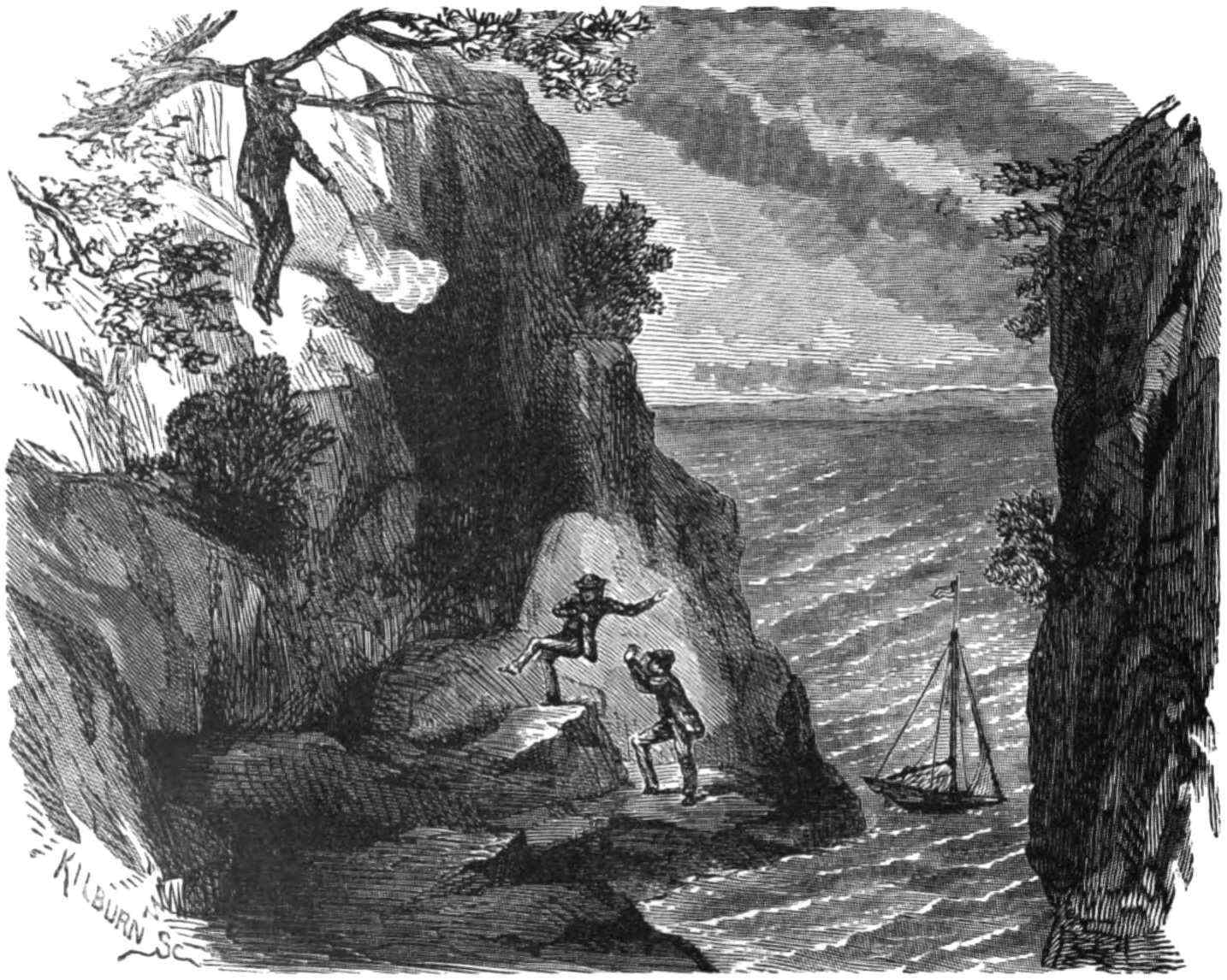 I pointed to the glass, which was secured on a couple of spring brackets, so that it could not be moved from its place by the pitching of the vessel. Under it was a large silver plate, upon which an inscription was engraved. It was placed directly over the entrance to the cabin, and in calling Tom’s [304] attention to the spy-glass, I intended he should see this plate. All the party in the standing-room were watching him with the most intense interest and delight.