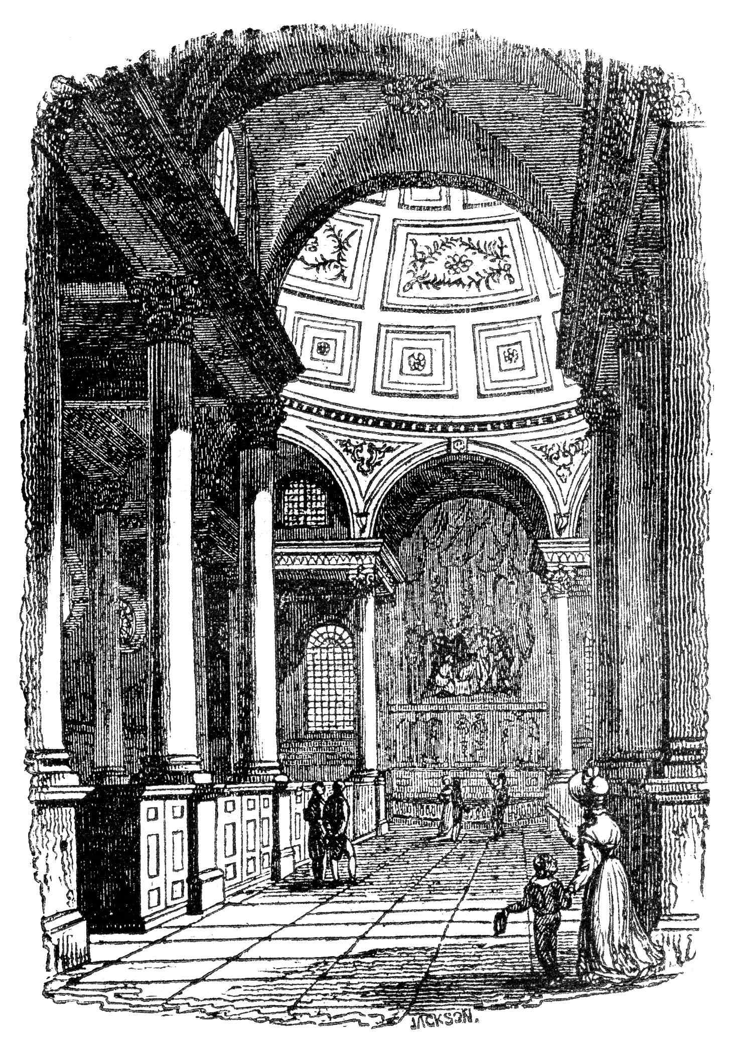 October 20.—On this day in the year 1632, exactly two centuries ago, was born Sir Christopher Wren, the celebrated architect of St. Paul’s. His birth-place was East Knowle, in Wiltshire, of which parish his father was rector. He early gave proof of that ingenuity and aptitude for scientific pursuits by which he was afterwards so eminently distinguished, having in his thirteenth year invented a new astronomical instrument, and soon afterwards various other mathematical contrivances. At the age of fourteen he was sent to Wadham College, Oxford, and here his remarkable proficiency in various branches of learning, and especially in the mathematics, soon made him known to various persons of distinction and influence. Young as he was at this time, he was one of the original members of the club which was formed at Oxford in 1648 for philosophical discussion and experiments, and which eventually gave rise to the Royal Society. In 1657 he was chosen Professor of Astronomy at Gresham College; and on the Restoration was appointed to the Savilian professorship of Astronomy at Oxford. It was very soon after this that he was first called upon to exercise his genius in architecture (a study, however, which had previously engaged a good deal of his attention) by being appointed assistant to the Surveyor-General, Sir John Denham, who, in truth, neither knew, nor pretended to know, anything of the duties of the office which he held. This led to Wren’s employment on the work on which his popular fame principally rests, the re-building of the cathedral of St. Paul’s after the great fire. The erection of this noble edifice occupied him for thirty-five years; but neither prevented him from designing, during the same period, and superintending the completion of many other buildings, nor even interrupted his pursuit of the most abstract branches of science. We are accustomed to speak of Sir Christopher Wren only as a great architect; but he was also, in truth, one of the first mathematicians that England has ever produced. Among the host of eminent cultivators of mathematical physics by whom that age was distinguished, there is perhaps scarcely a name, with the exception of that of Newton, which deserves to be placed before his, His mechanical inventions were very numerous, and many of them of sterling ingenuity. Among other things there is every reason to suppose that to him we are really indebted for the invention of the art of mezzotinto engraving, of which Prince Rupert has generally had the credit. Wren was created LL.D. by the University of Oxford in 1661, and was knighted in 1674. In 1680 he was elected to the Presidency of the Royal Society, and in 1685 he entered Parliament as representative of the borough of Plympton. While superintending the erection of the cathedral of St. Paul’s all the salary that Wren received was only £200 a year. He was also used in other respects by the Commissioners with extreme illiberality and meanness; and at last the ingratitude of his country, or rather of his times, was consummated by his dismissal in 1718 from his place of Surveyor of Public Works. He was at this time in the eighty-sixth year of his age. This great and good man died at Hampton Court on the 25th of February, 1723, in the ninety-first year of his age. His remains were accompanied by a splendid attendance to their appropriate resting-place under the noble edifice which his genius had reared; and over the grave was fixed a tablet with the inscription in Latin (since placed in front of the organ,) “Beneath is laid the builder of this church and city, Christopher Wren, who lived above ninety years, not for himself but for the public good. Reader, if thou seekest for his monument, look around.” Amongst the London Churches which were built from the designs of Sir C. Wren, one of the most beautiful, as to its interior, is that of St. Stephen’s Walbrook, of which the following cut may give some notion.