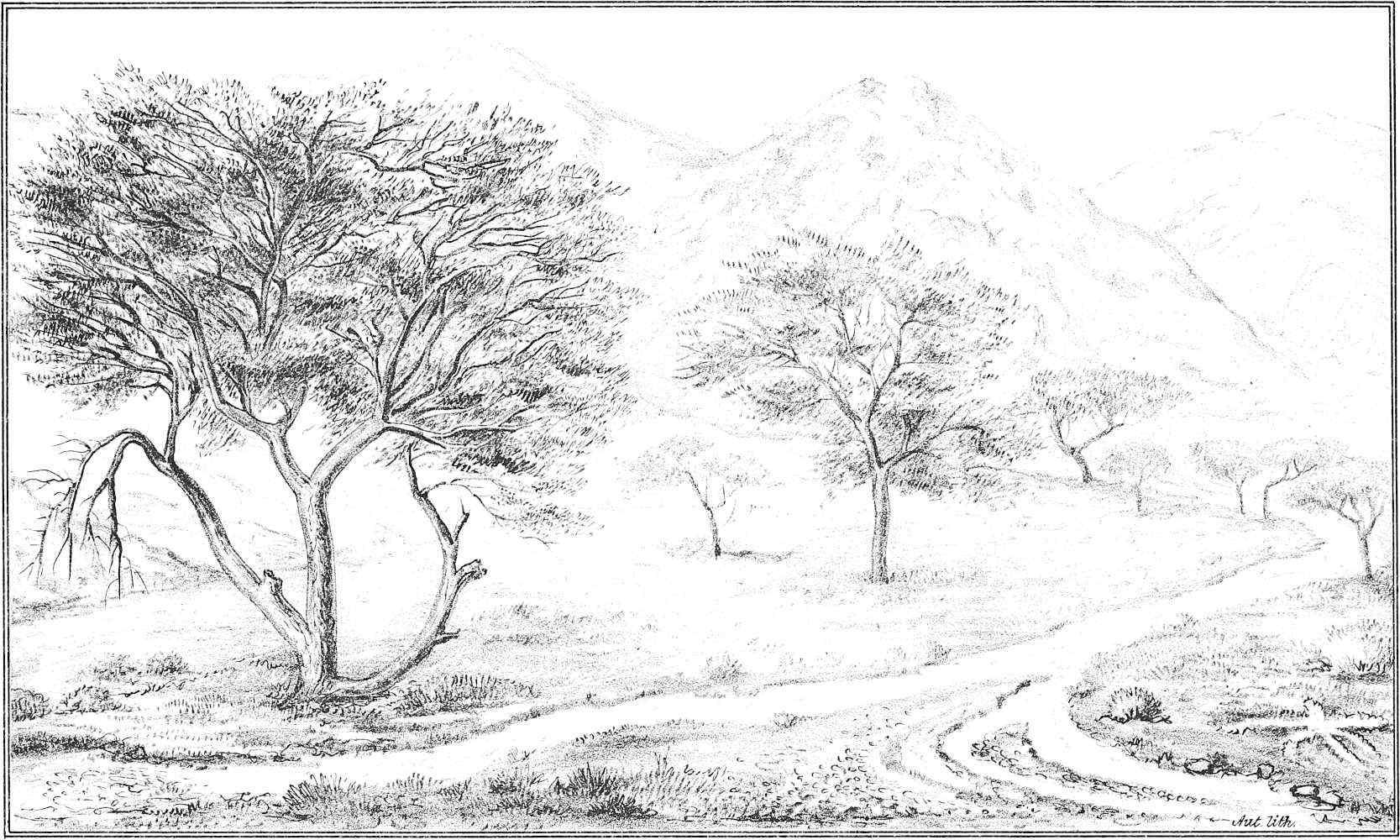 Da waren es denn auch vorzugsweise die Acacien, welche als treue Begleiter auf allen seinen Wegen dem Reisenden bald sympathisch wurden, so wenig auch anfänglich ihr Aeusseres Einladendes zu besitzen schien. Indess es erging ihm hier wie mit den rohen Bewohnern jener Gegenden, welche, entsprechend dem allgemeinen Charakter ihrer heimathlichen Natur, bald abstossend durch Misstrauen und Fanatismus sich des Fremdlings erwehrten, wie die Dornen der Acacien, oder wie letztere da, wo sie gebogen und gekrümmt erscheinen, sich mit bettelhafter Zudringlichkeit an seine Fersen hefteten. Auch hier gab es noch Mittel, um sich, über die rauhe Aussenseite hinwegsetzend, mit den Vorzügen ihres besseren Ichs vertraut zu machen. Ein fortgesetzter Umgang mit ihren Dornen und Stacheln gab dem Reisenden solche an die Hand, Kratzwunden an Armen und Beinen lehrten denselben seine Gewandtheit verdoppeln, um sich ihren unsanften Umarmungen zu entwinden, zerrissenen Kleidern verdankten solche von starrem Leder ihre Entstehung, und zu den allen Attaquen hohnsprechenden Dornenkronen bahnte ihm schliesslich ein Taschenmesser den Weg, behutsam Dorn für Dorn mit demselben entfernend; kurz und gut, wie die Klaue der Katze nichts Gefährliches mehr an sich hat, wenn man sie nur richtig zu nehmen weiss, so wurden mit der Zeit auch die Acacien des Reisenden trauteste Freunde, spendeten ihm mit Hülfe eines über ihr blattloses Gestell gespannten Tuchs selbst Schatten inmitten der ödesten Wüste, oder vertheidigten an anderen Orten die Eingänge seines Lagers gegen die Zudringlichkeiten nächtlicher Räuber.