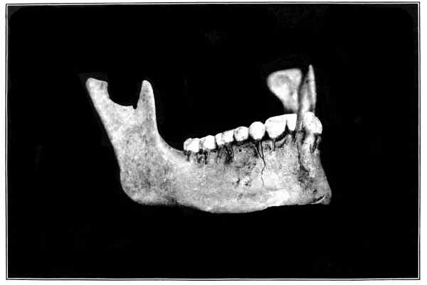 [40] Measured with the compas glissière in such manner that the center of the second molar or of its aveolus corresponds to the middle of the rod of the compass between the two branches which are applied to the ramus.