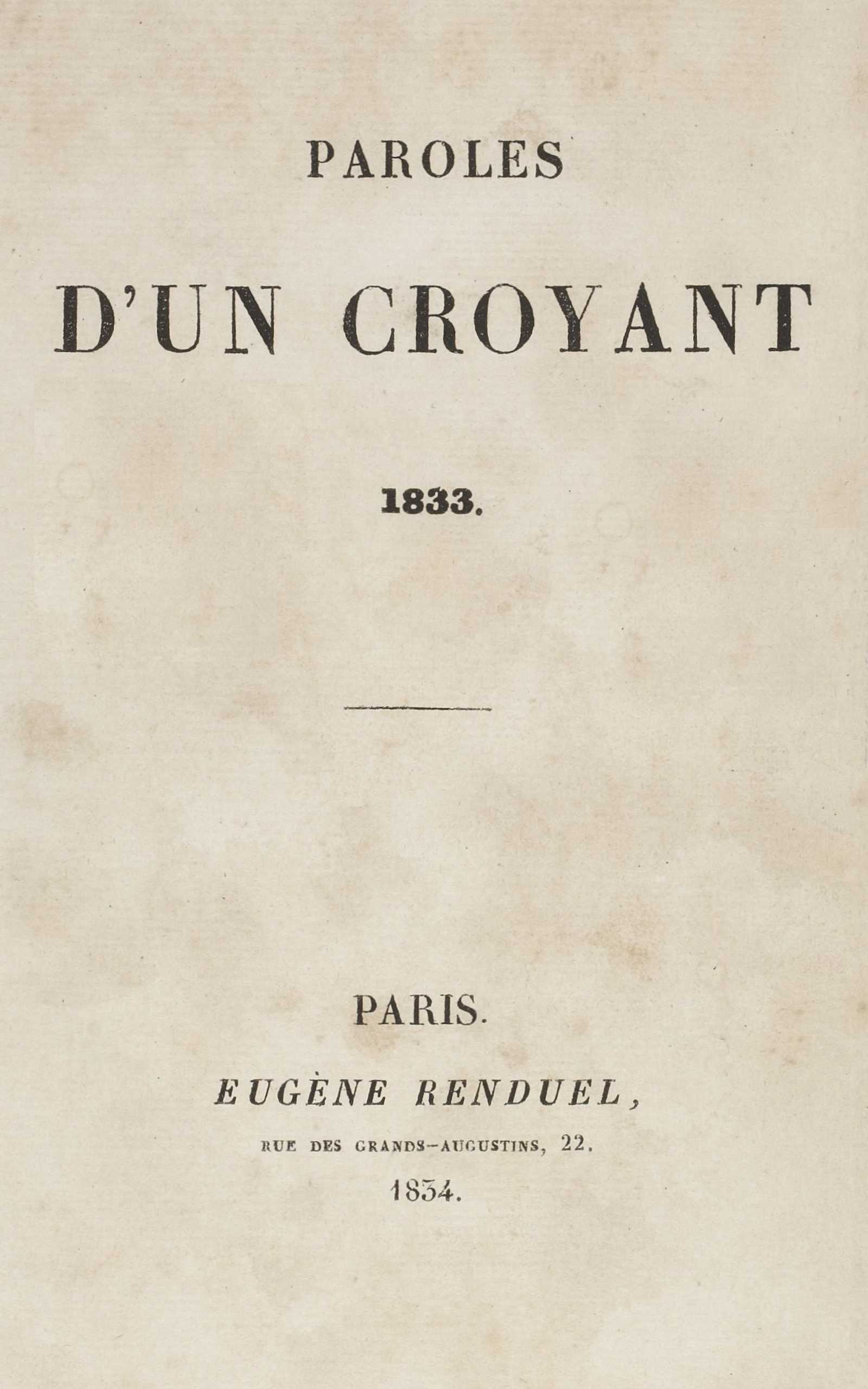 Il y a dix-huit siècles, dans une ville d’Orient, les pontifes et les rois de ce temps-là clouèrent sur une croix, après l’avoir battu de verges, un séditieux, un blasphémateur, comme ils l’appeloient.